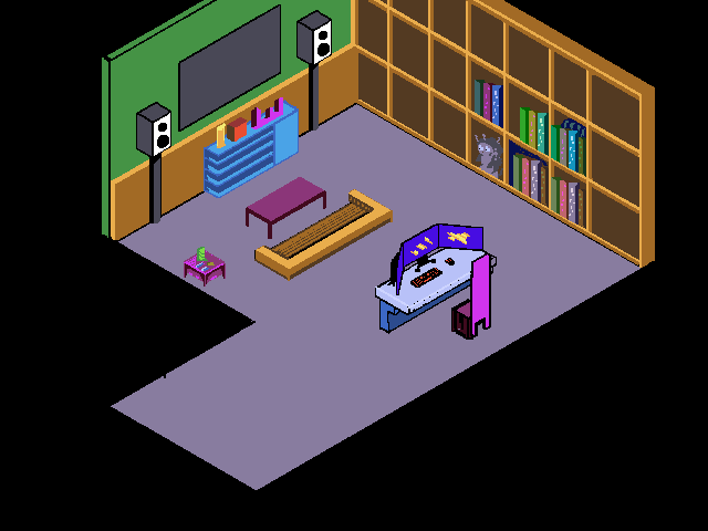 Next scene we find the main character holding a motivational speech in his red jacket contrasting on the green background, it’s like a portrait scene focused on him.